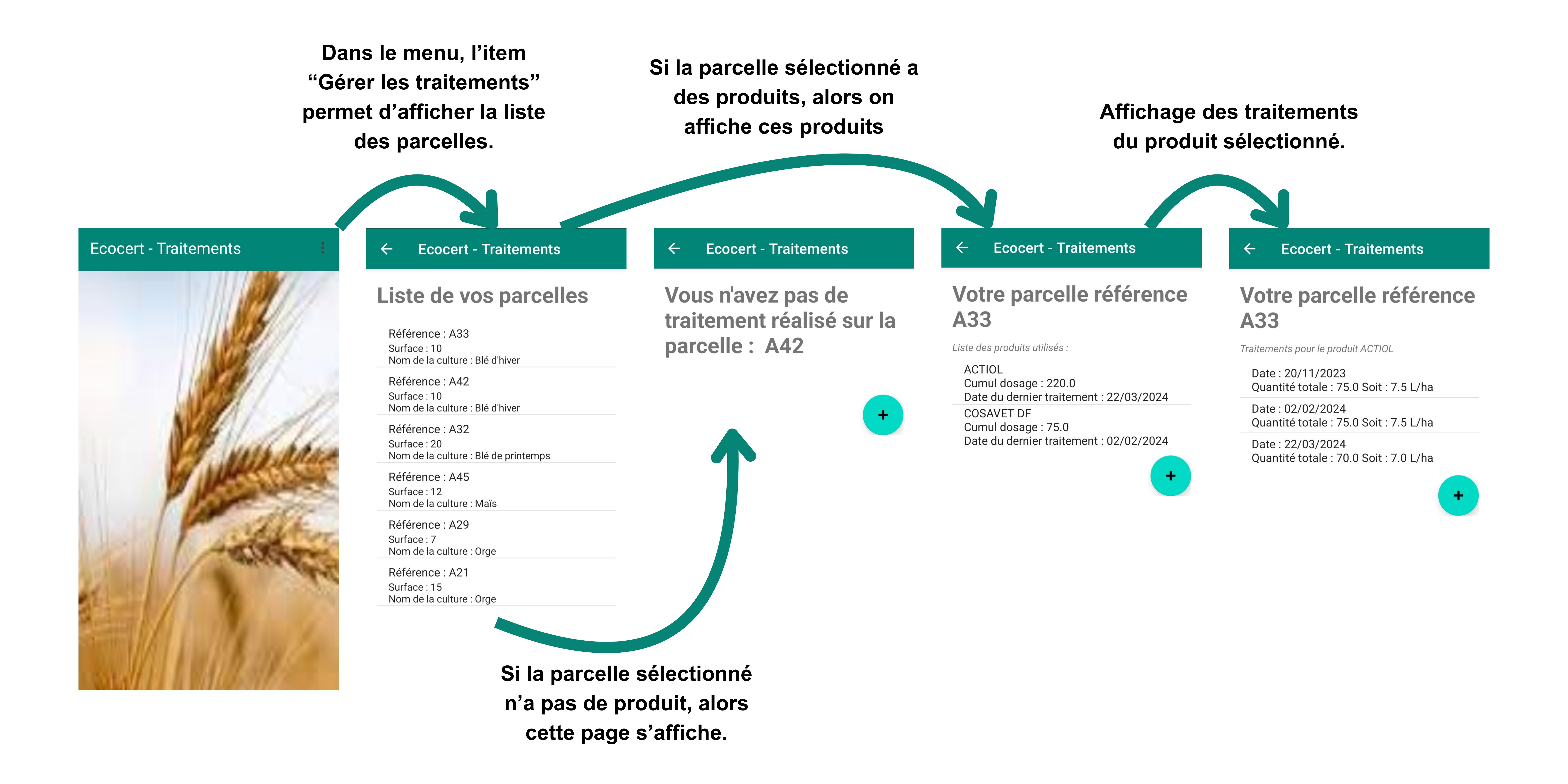 Quand l'exploitant souhaite gérer ses traitements, il choisit dans le menu